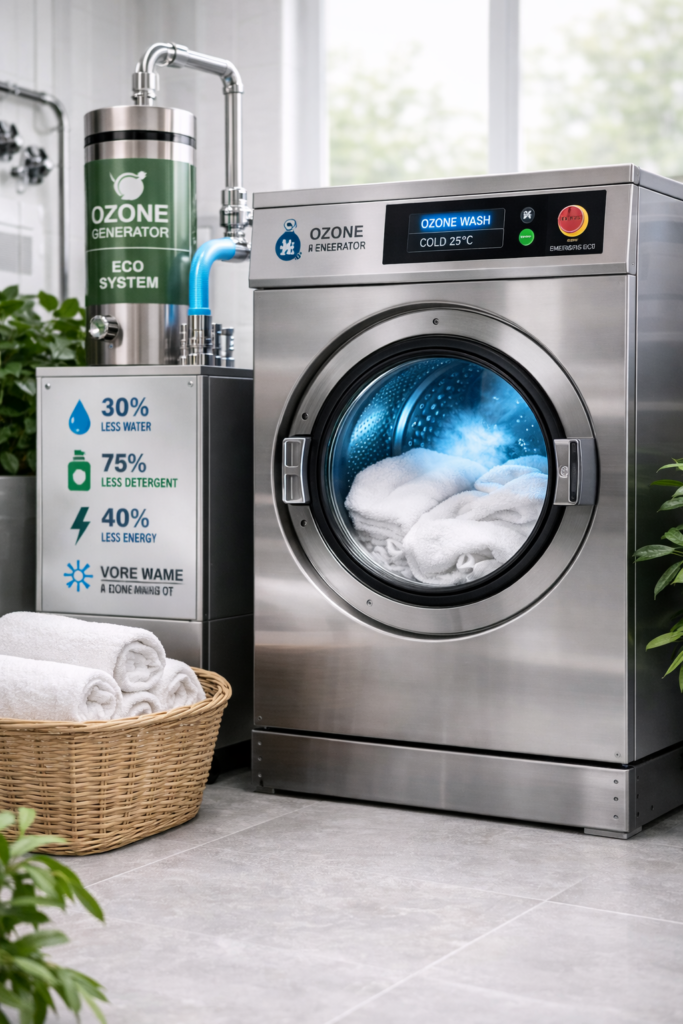 We help hotels, hospitals, and commercial laundries reduce water, energy, and chemical usage through advanced ozone-based washing systems. Our solutions deliver cleaner linen, longer fabric life, and measurable monthly savings all while supporting ESG compliance and sustainability goals.